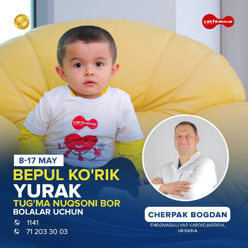 ПодробнееTug‘ma yurak nuqsonlari bilan og‘rigan bolalarni davolashga qaratilgan xayriya aksiyamiz